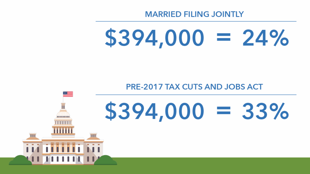 The difference shows up clearly in real numbers. “If you take a married, filing jointly couple, they’ve got $394,000 that can get them all the way up into the top of that 24% tax bracket without clicking into the 32% tax bracket,” Loren said. Before those changes, “that would have put them in the 33% tax bracket (prior to the Tax Cuts and Jobs Act).”