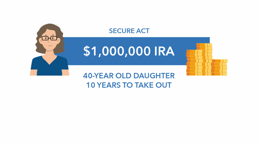 “Prior to the Secure Act,” Clint said, a 40-year-old inheriting a $1 million IRA could take distributions over her lifetime.” Adding that hypothetical, that distribution could be about $4,000 a year.