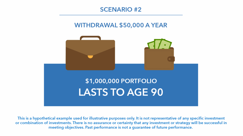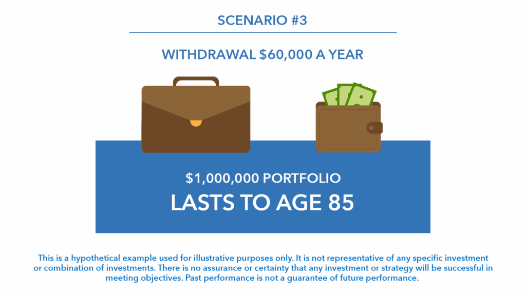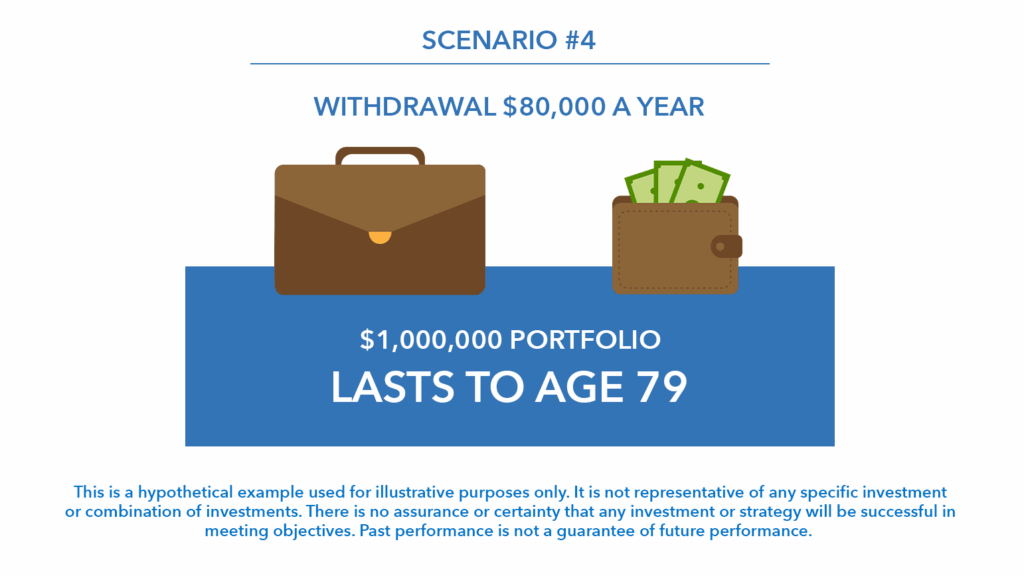 “The amount that you take out is so important to how long this million dollars lasts,” Loren says. “You can see already through the first three examples how big of a difference it makes.”