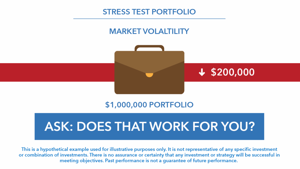 He gives a simple example. “You have a million dollars. What happens when we go through a bad scenario? That million dollars could lose $200,000. Now you have $800,000 left.”